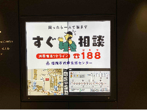 「消費者月間」と位置付けている5月と、「福岡県悪質商法撲滅月間」と位置付けている12月に、注意喚起を強化するため、デジタルサイネージで動画を放映しています。