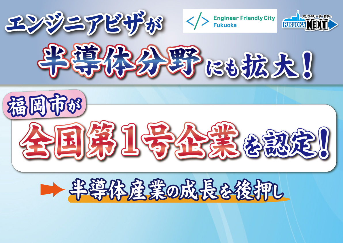 はい。福岡市から始まったエンジニアビザですが、その分野が半導体まで広がって、認定第1号の企業が決まりました。【フリップ】