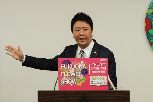 3月23日から27日まで、花いっぱい、そして、世界をリードできるようなですね、そんな福岡ならではのフラワーショーが開催したいなと思いますので、そのプレイベント、ぜひ、ご期待いただきたいと思います。