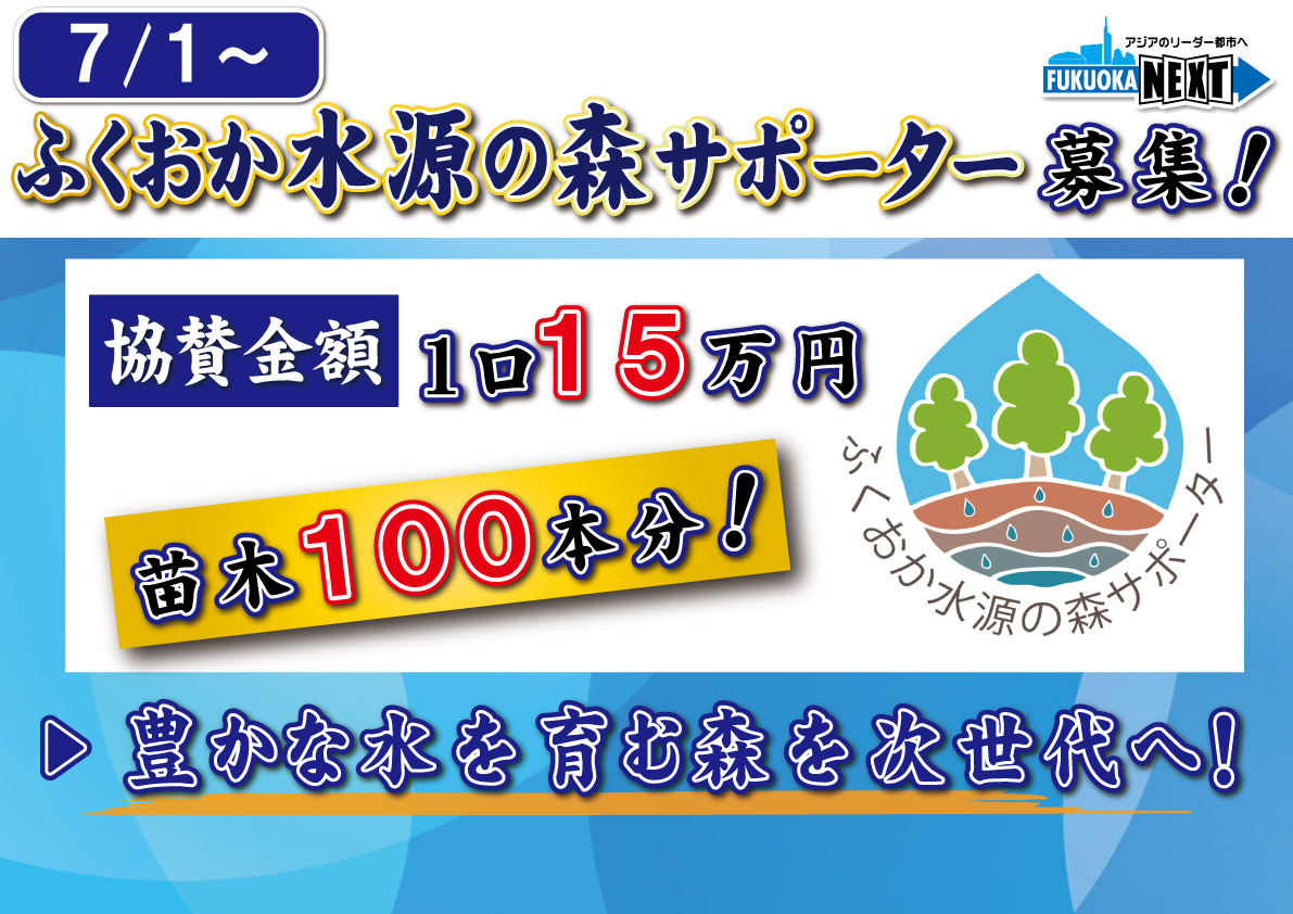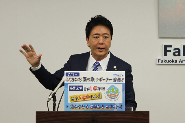 同じ緑についてなんですが、緑にはいろんな役割がございます。福岡市の大切な水を育む水源の森を守るために、「ふくおか水源の森サポーター制度」をスタートいたします。【フリップ】