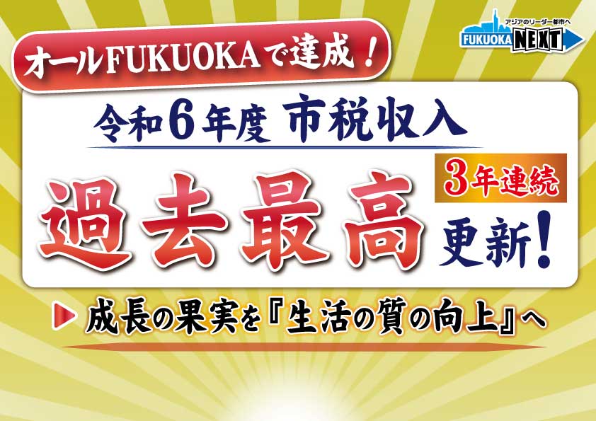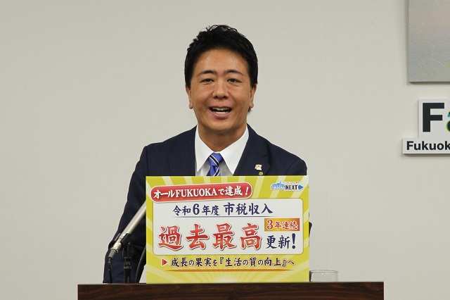 では、3つ目。令和6年度の福岡市の市税収入が過去最高を更新いたしました。【フリップ】しっかりと市民生活が豊かになるように、市民の皆さんに還元をしていきたいと思っております。