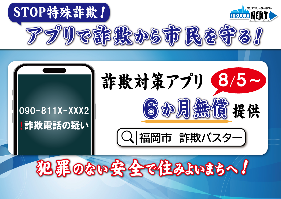 はい。福岡市では、特殊詐欺から市民の皆さんを守るために、スマホのアプリを活用した詐欺被害防止の取り組みをスタートいたします。【フリップ】