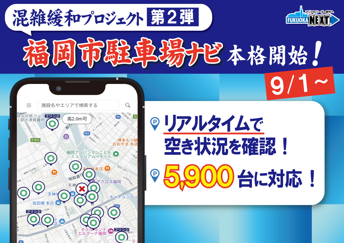 9月1日から、これはサービスを開始をいたします。ぜひ多くの方にご利用いただいて、スムーズに駐車場に入っていただくことによって、結果として天神地区の混雑が緩和されればと思いますので、ぜひ皆さん、使ってみてください。