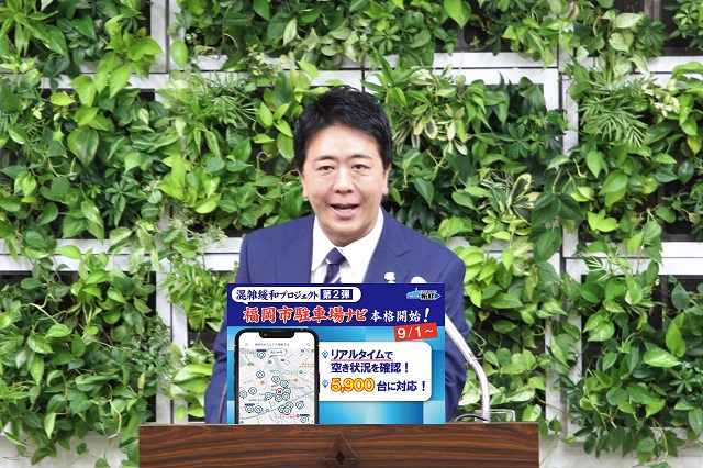 特に天神地区について、駐車場どこだろうというので、大名エリアも含めてですね、結構ぐるぐる駐車場を探すために、結構車が混雑しているというようなこともあると思うんで、今どこで空(あ)いているというのが、もうスマホ上で分かれば、直でそこに行けますよね。そうしたことで、今回、福岡市としてですね、準備を進めてきまして。リアルタイムで、今、駐車場どこが空いているのか。