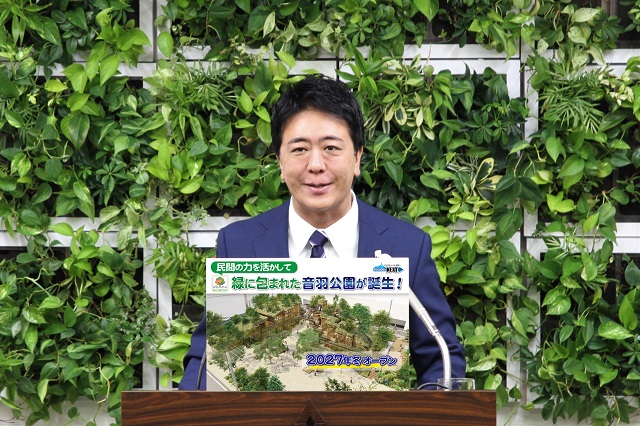 ということで、今回ご紹介をした音羽公園についてはですね、「都心の森1万本プロジェクト」を踏まえた圧倒的な緑に包まれた空間になる予定でございますので、大変完成が楽しみでございます。これから具体的な計画や整備を進めてですね、2年後、令和9年の冬にオープン予定でございますので、ぜひ楽しみにされてください。はい、2件目が以上ですな。