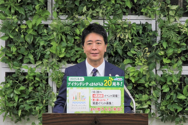 20周年ということで、本当に感慨深いこともあるわけですけれども、本当にたくさんの皆さんに今お住まいをいただいて、緑豊かなまちになっておりますんでね、ぜひこれを機会に、またアイランドシティに住んでいない方も、このアイランドシティというのが今どうなっているのか、そういう魅力をですね、ぜひ感じていただければと思います。