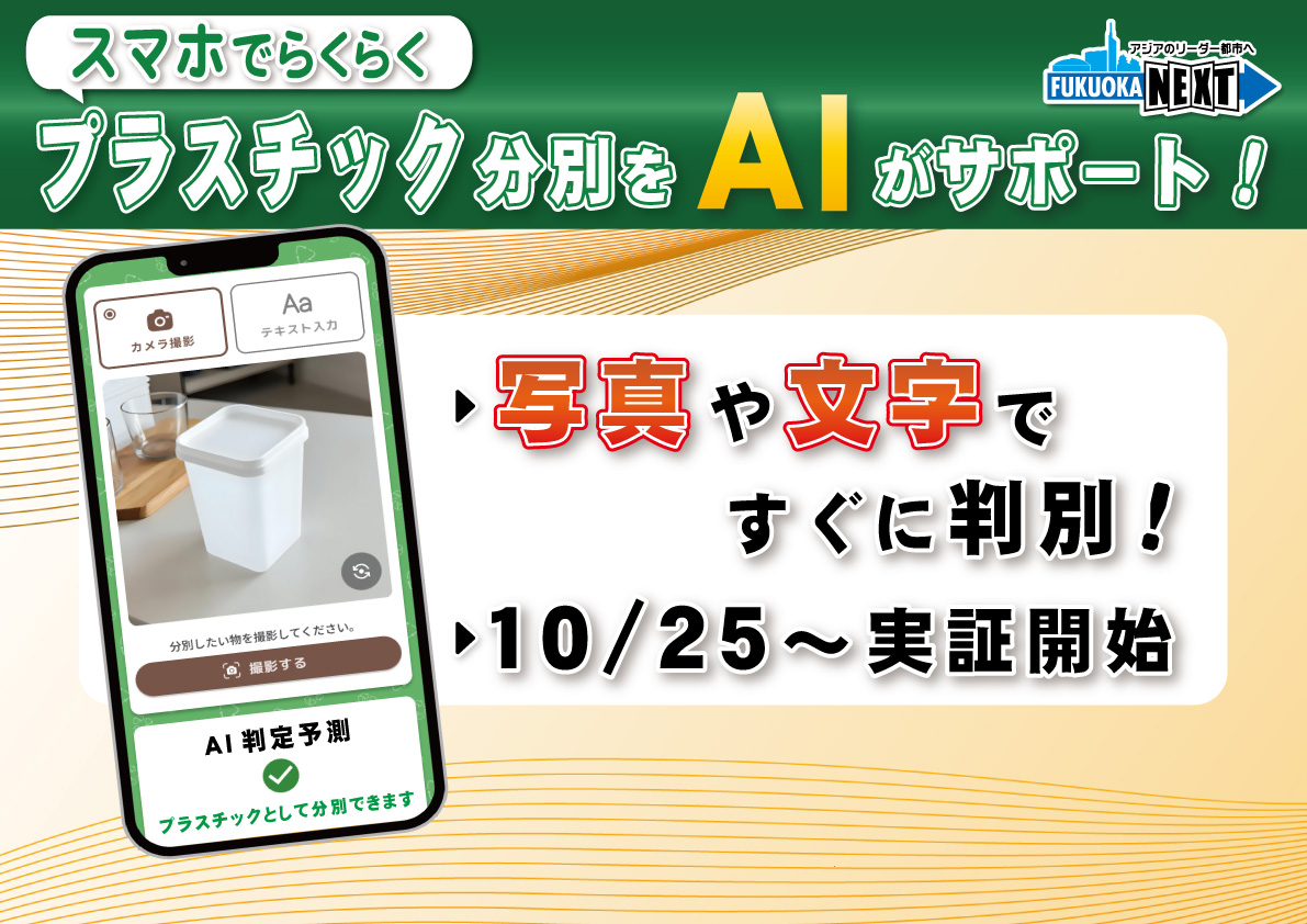 じゃあ、次、行きますね。福岡市では、新たなゴミ分別収集の開始に向けて、「AIを活用したプラスチック分別サービス」の実証実験を開始いたします。【フリップ】