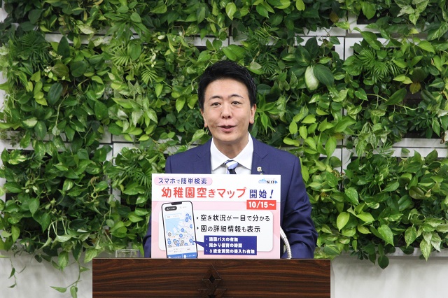 去年、子育て世帯の応援としてですね、こちら「保育所の空きマップ」というものをスタートしたんですが、これも大変好評ということで、今年はその幼稚園バージョンもつくってということで、ぜひご活用いただければと思っております。
