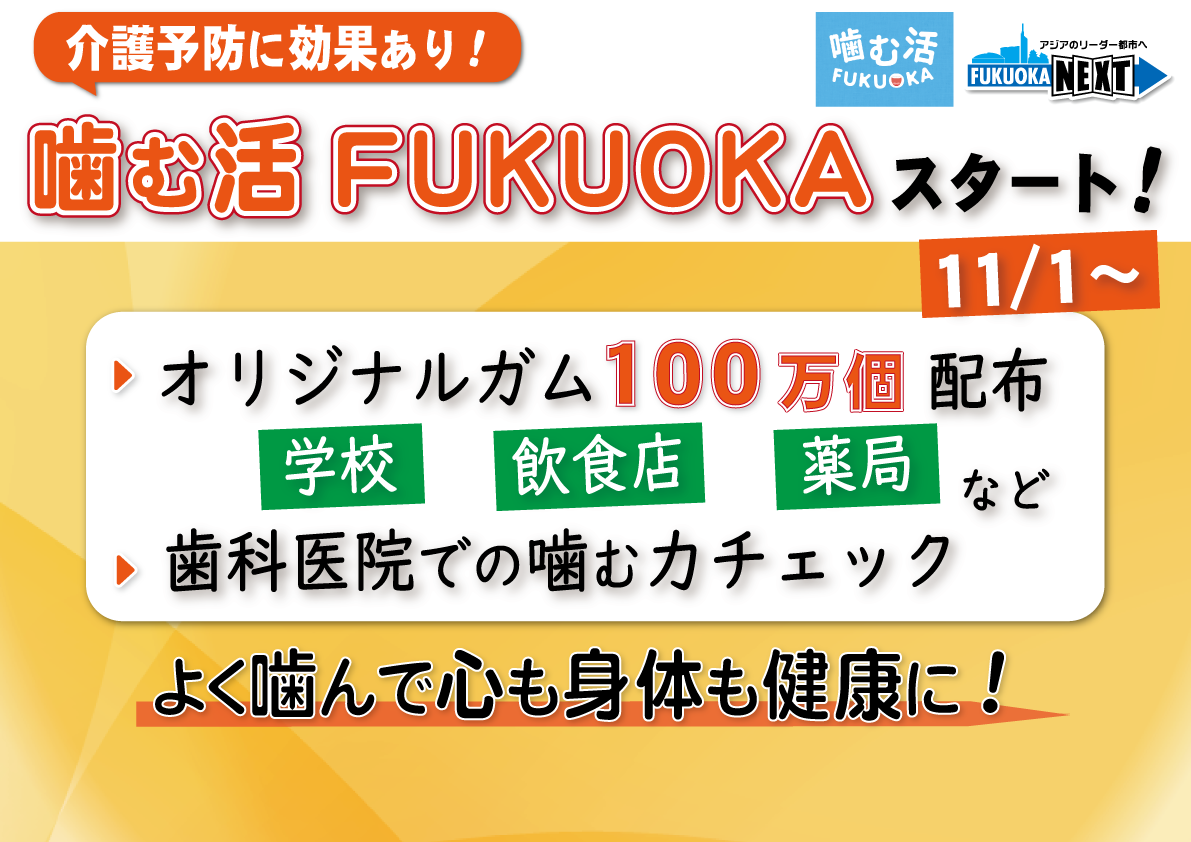 はい。よく噛(か)むことで、将来の要介護状態を予防しようという、新しいプロジェクト「噛む活FUKUOKA」がスタートをいたします。【フリップ】