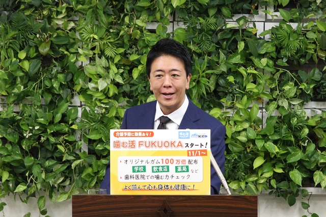 この度、先ほどありましたように、福岡市様では噛む活の特別パッケージのガムをですね、100万個ほど生産させていただきました。活動にご貢献させていただきたいと思っております。
