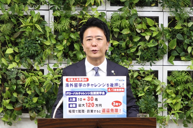 大学生の皆さんが、海外留学で培った経験や視点、これは皆さん自身の将来だけではなくって、福岡のまちの未来にもつながっていくことでございますので、ぜひこの奨学金を活用して、一歩踏み出していただければと思います。