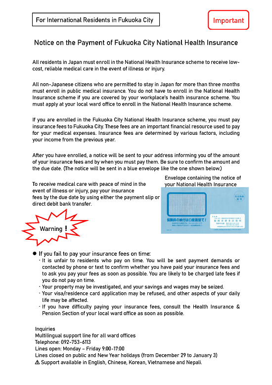 Notice on the Payment of Fukuoka City National Health Insurance(Important) (577kbyte)![]()