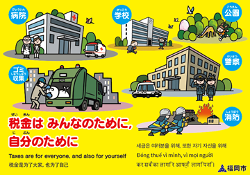 फुकुओका शहरले सङ्कलन गरेको करलाई सडकको मर्मतसम्भार र फोहोर प्रशोधन जस्ता हाम्रो दैनिक जीवनका क्रियाकलापहरूका लागि प्रयोग गरेको छ।