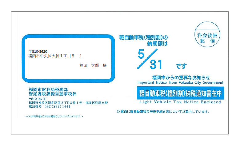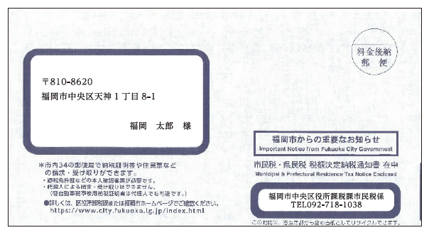 फुकुओका शहरमा आफ्नो ठेगाना वा कार्यालय नभएका तर फुकुओका शहरमा नगर बासिन्दा कर जस्ता करहरू तिर्नुपर्नेहरूले आफ्नो लागि कर भुक्तान नियन्त्रक नियुक्त गर्नुहोस्। उक्त नियन्त्रकले तपाईँको ठाउँमा कर भुक्तान सूचना पत्र प्राप्त गर्छन् र कर तिर्छन्। (कर भुक्तान नियन्त्रकबिना कर तिर्दा पनि कुनै समस्या नहुने भनिएको छ भने कर भुक्तान नियन्त्रक नियुक्त गर्न आवश्यक छैन ।)