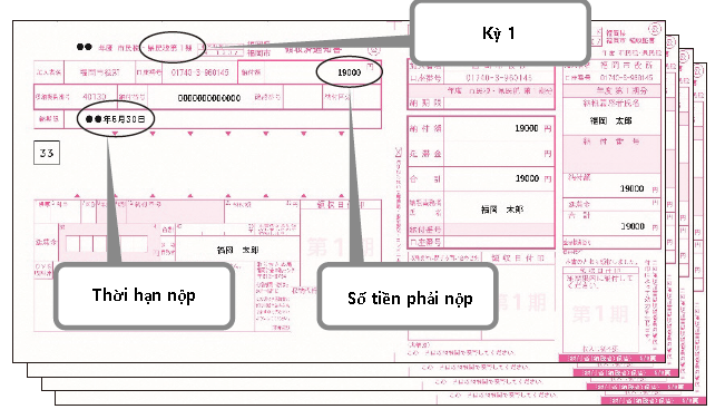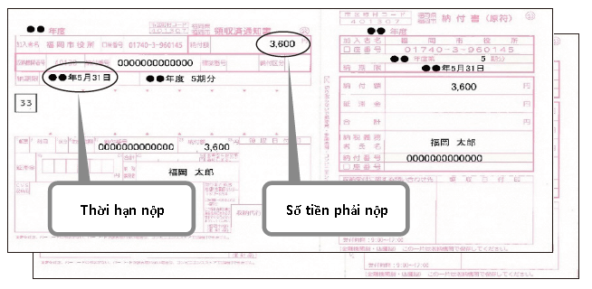 Vui lòng mang Giấy Nộp thuế này đến cửa hàng tiện lợi, ngân hàng hoặc bưu điện để nộp đến trước cuối tháng 5.