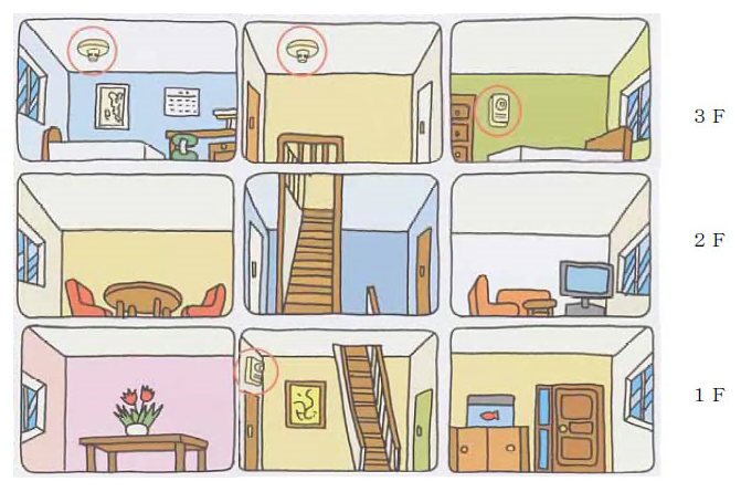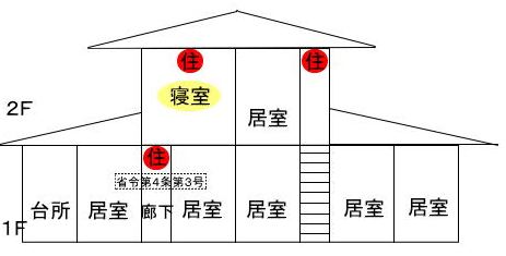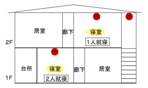 | 2階建住宅で就寝する階が,1階及び2階に1部屋 |