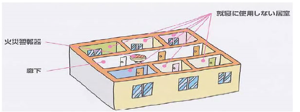 | 令第5条の7第1項第1号イ及びロ並びに第4条第1号,第2号並びに第3号ロ及びハに揚げる住宅の部分 | 光電式住宅用防災警報器 |