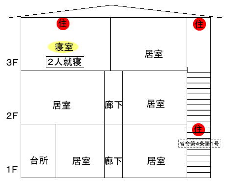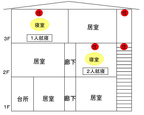 | 3階建住宅で就寝する階が2階及び3階に1部屋 |