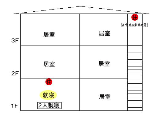 | (第5条の7第1項第1号イ,ロ,ハ) 3階建住宅で就寝する階が3階に1部屋 |