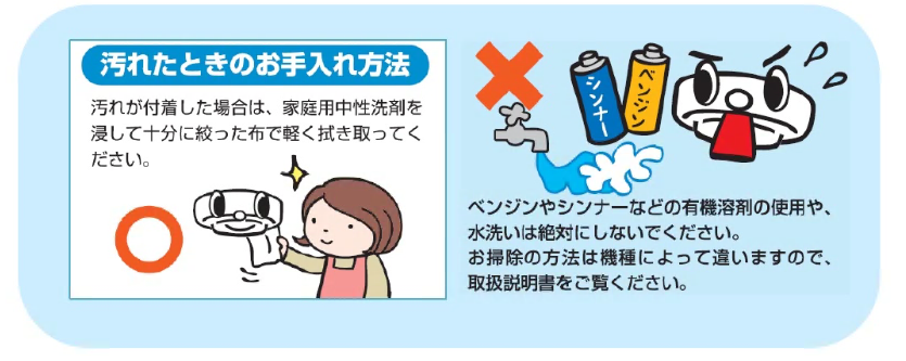 | 2 ほこりや汚れ等が付着していたら取り除きましょう。 |