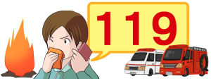 119とダイヤルしてください。 Dial 119. 拨打消防报警电话119。 119 다이얼을 눌러 주십시오. |