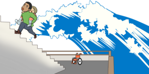 海の近くにいたら,高いところに逃げる! Escape to high ground if by the ocean. 如在海边或附近,立即远离并向高处避难! 해안 가까운 곳에 있다면 높은 곳으로 대피한다. |