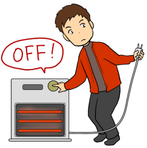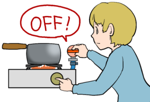 火の始末は速やかに! Put out any fire hazards as soon as possible. 立即处理明火或火源! 사용중인 불은 즉시 끈다. |