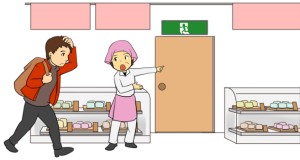 デパート等にいたら,従業員の指示に従う! If in a store, follow the staffs’ instructions 如身处百货商店等,请听从工作人员的指挥! 백화점 등의 장소에서는 담당직원의 안내에 따른다. |