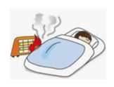 - ○就寝中、寝返りした際に布団がストーブに接触した。